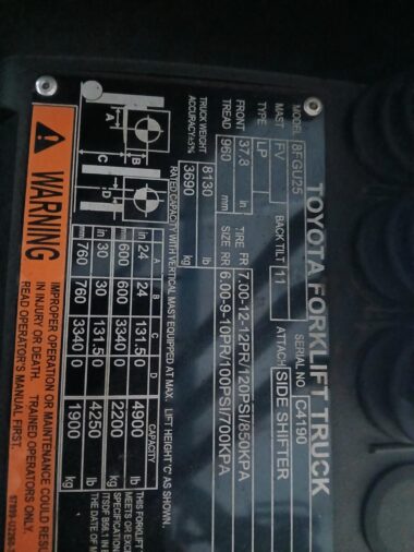 2021 Toyota 8FGU32 LPG forklift with 5,000lb capacity — reliable, versatile, and built for indoor/outdoor material handling.